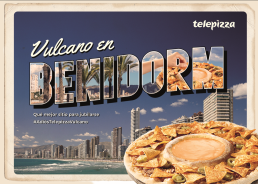 Una de las pizzas más reclamadas desde que se tomara un descanso es la Telepizza Vulcano, cuya peculiaridad son los nachos que la cubren y un “dip” de queso en su centro para mojarlos, la fórmula de la felicidad hecha pizza. Pero lejos de desaparecer, esta icónica pizza se desplazó hasta Benidorm, lugar de ensueño para jubilados y descanso eterno, donde disfruta del “dolce far niente”, el aquagym y el bingo, gastándose lo ganado durante sus gloriosos años trabajados. Sin embargo, tras un tiempo alejada de los focos de la marca, ha decidido pausar su retiro para hacer felices a muchos telepilovers que la echan de menos. Eso sí, sin dejar su actual residencia en una de las ciudades más famosas de la costa alicantina.